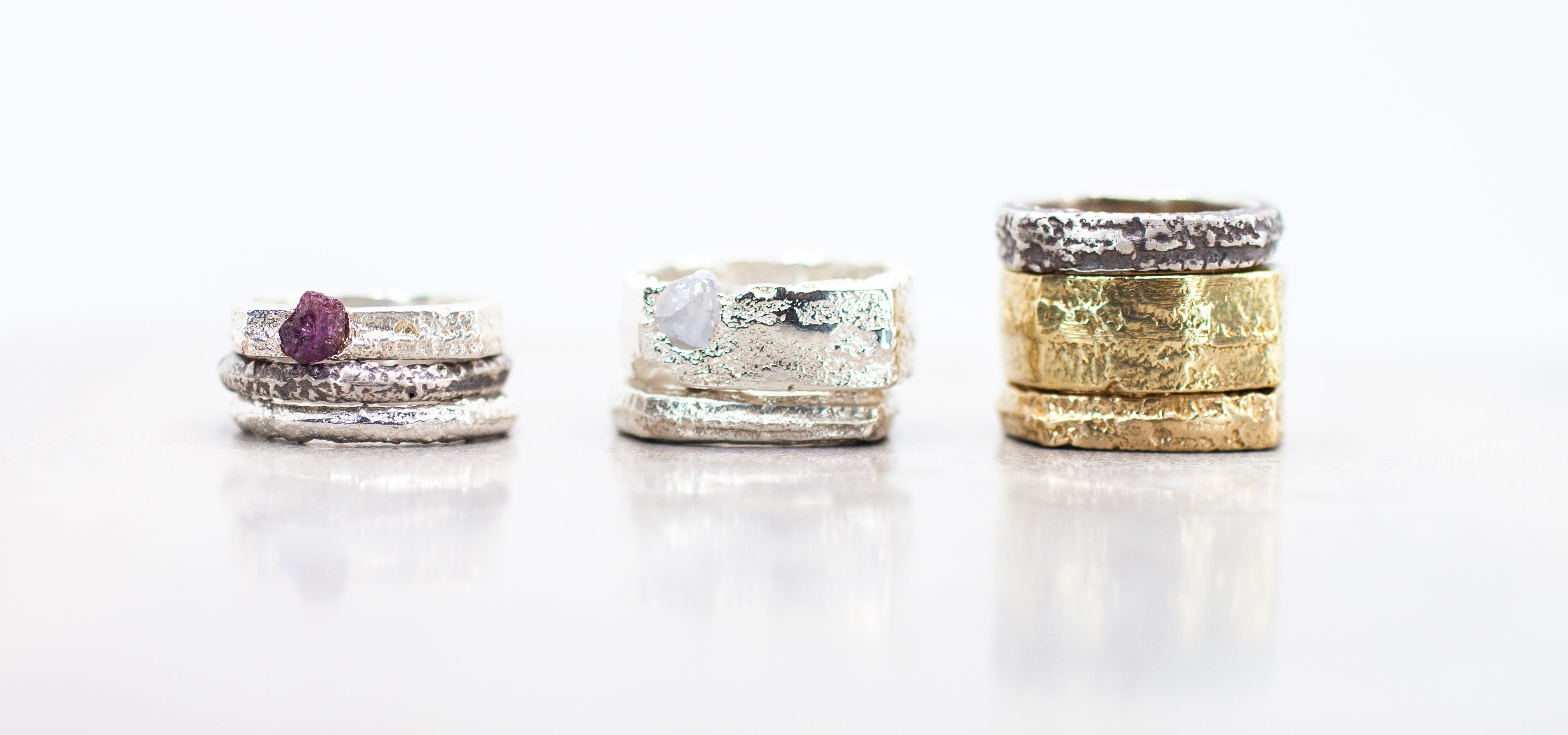 Welcome to the Organic Chaos Ring Collection—a celebration of art and nature's unpredictable beauty. Each ring in this collection is created through a unique molten wax process, capturing the spontaneous essence of organic forms in every piece.
