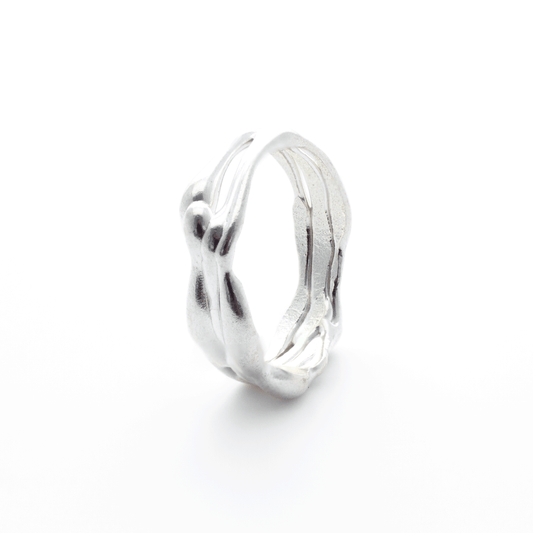 Welcome to the Organic Chaos Ring Collection—a celebration of art and nature's unpredictable beauty. Each ring in this collection is created through a unique molten wax process, capturing the spontaneous essence of organic forms in every piece.